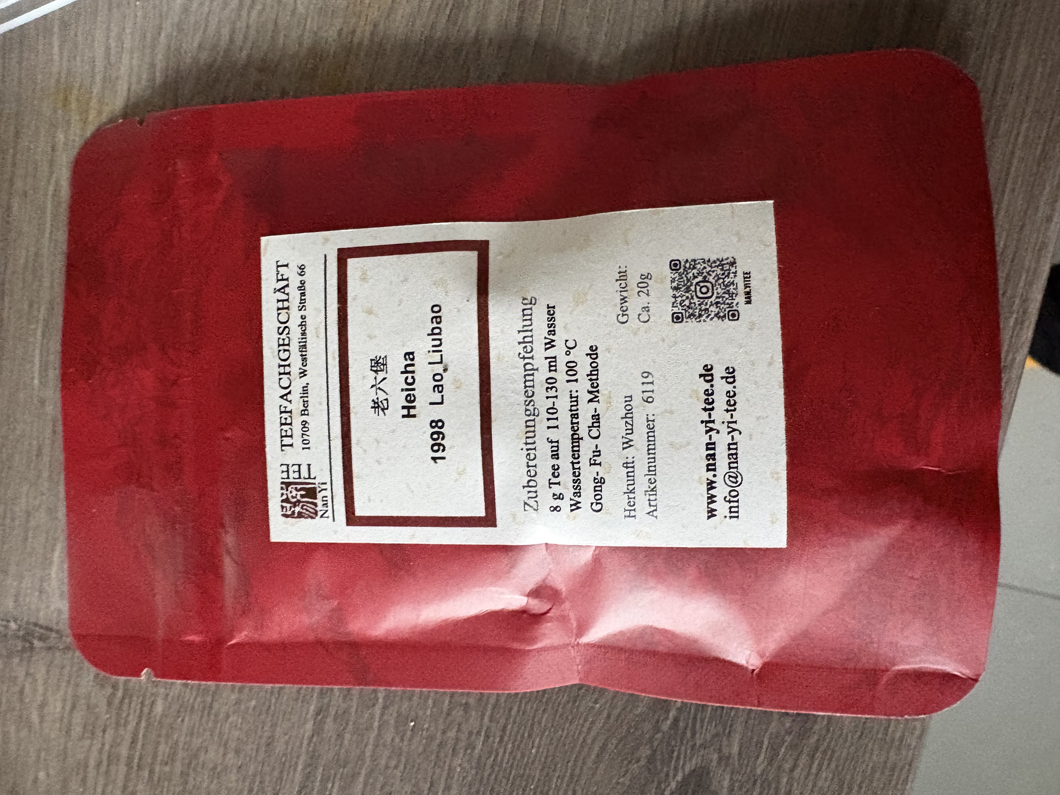 Сьогодні на моєму чайному столі особливий гість — Heicha Lao Liu Bao (老六堡) врожаю 1998 року від берлінського чайного дому Nan Yi Tee.